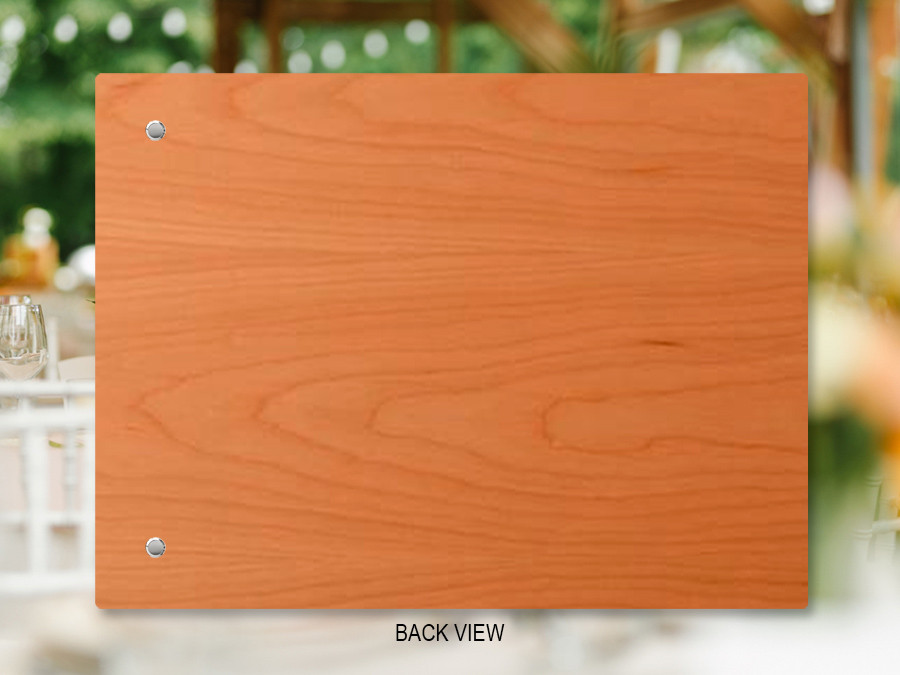 Choose Cherry or Maple (1/8 wood veneer with MDF core) and your hinge color (vegan leather), then add your details in the customization area. A proof will be sent to you for approval prior to beginning your order.