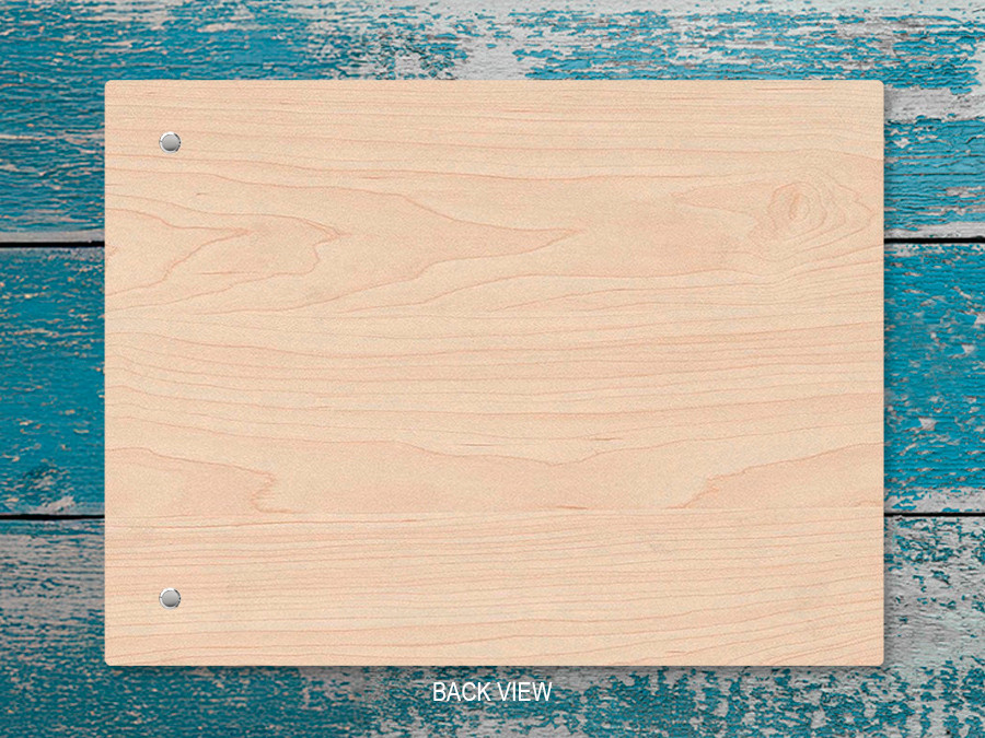 Choose Cherry or Maple (1/8 wood veneer with MDF core) and your hinge color (vegan leather), then add your details in the customization area. A proof will be sent to you for approval prior to beginning your order.