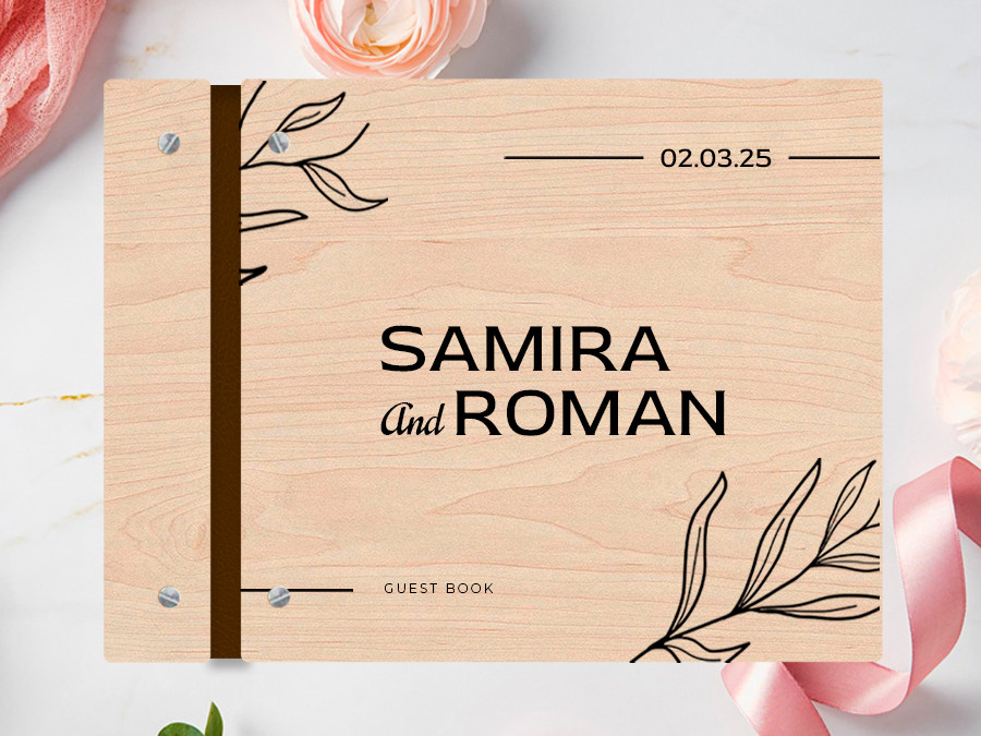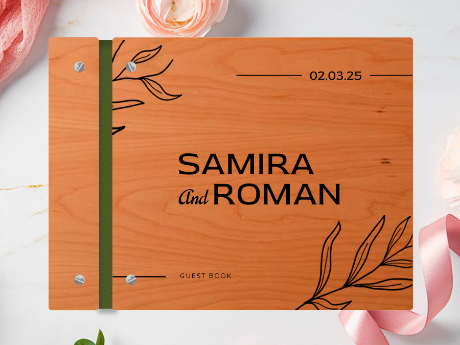 This 9 x 12 inch custom book is laser engraved with your unique details, making it a one-of-a-kind keepsake. Display it at your wedding, bridal shower, or event for guests to sign. Great for wedding and engagement gifts.