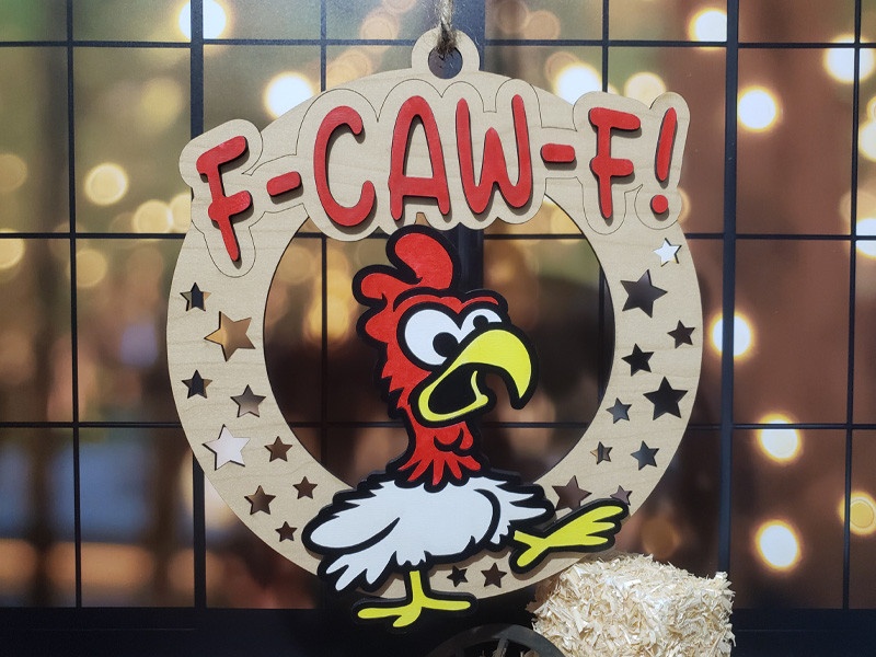 This Cheeky Chicken sign is sure to bring laughs. Hand made, 9.25 inches wide and ready to hang on your door or wall. An ornament version is available for holiday decorating.